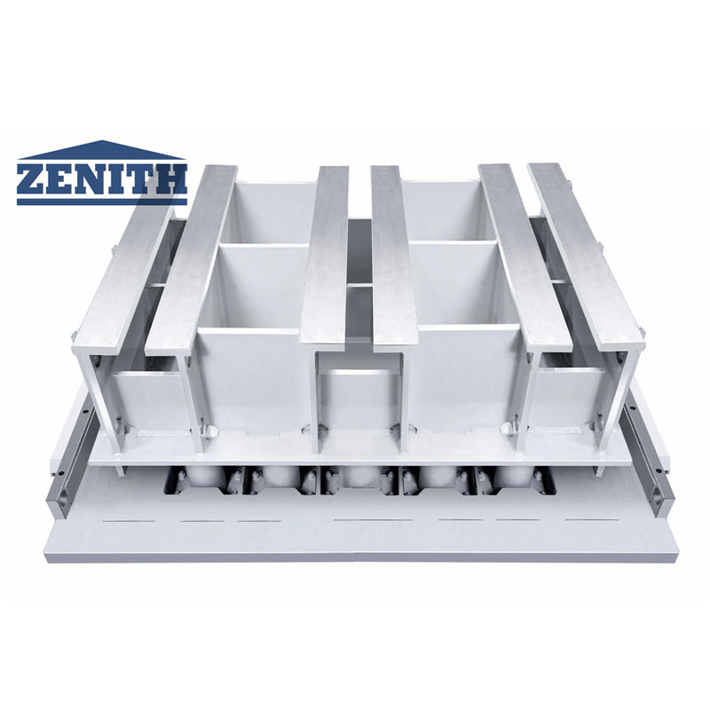 4) Zenith 1500 Palet Bakarreko Blokeak egiteko Makinarako zeharbide berri bat garatu da, zutabeak albotik banan-banan kentzeko aukera ematen duena. Ezaugarri berri honek mantentze lanetan denbora asko aurrezten du eta trukea askoz seguruago eta esfortzu gutxiagorekin egin daiteke. Multzo honen geometria osoa zutabeak barne, aurreko ZENITH 1500 makinaren berdina da. Posible da trabesi berri hau lehendik dauden makinetan aldatzea.